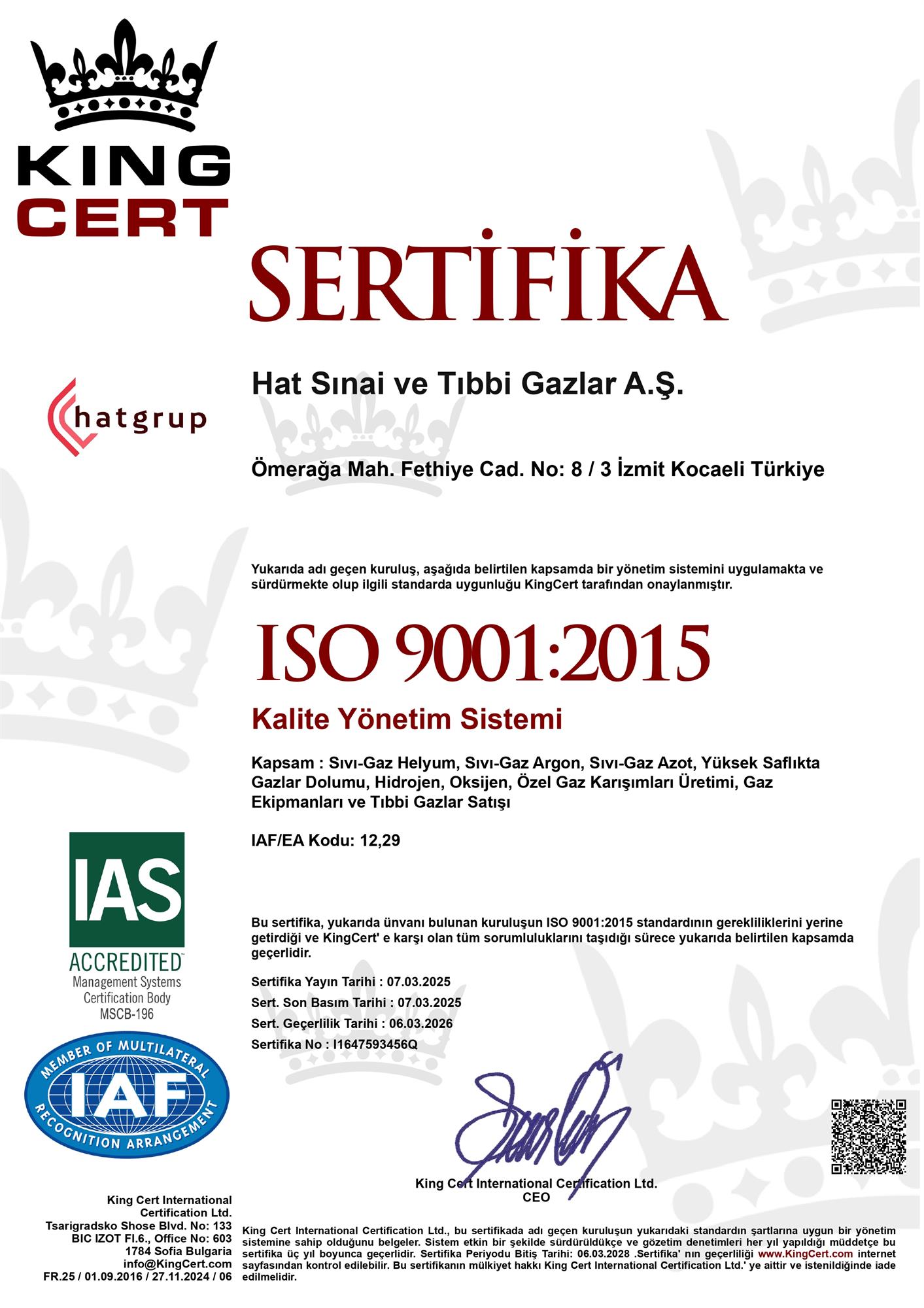 • Kalite Sertifikaları